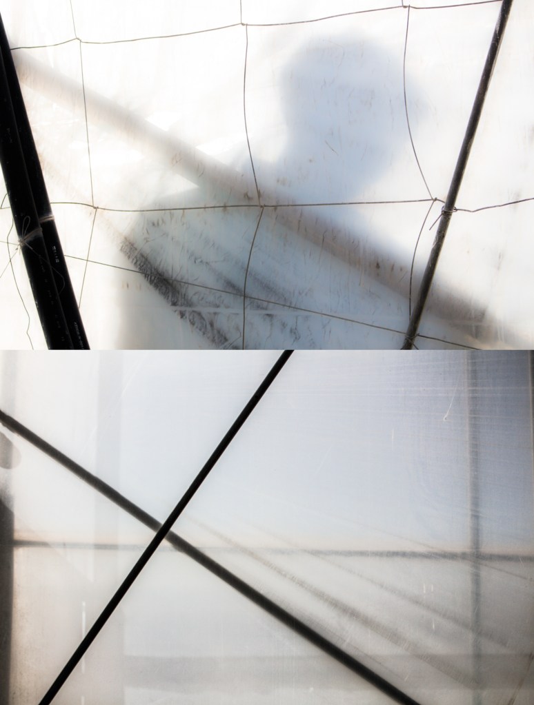 Estas imágenes sirven para mezclar mis propias opacidades con las incoherencias del paisaje del llamado mar de plástico. La herramienta fotográfica utilizada para captar las sombras de lo que hay afuera, las inquietudes de dentro.