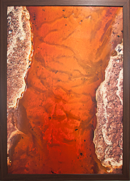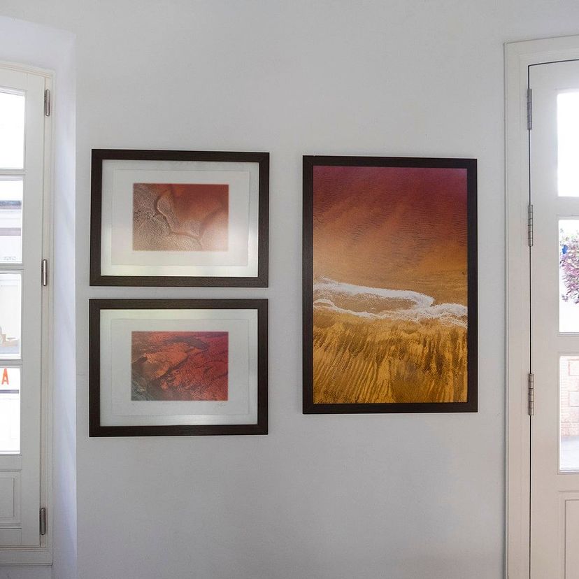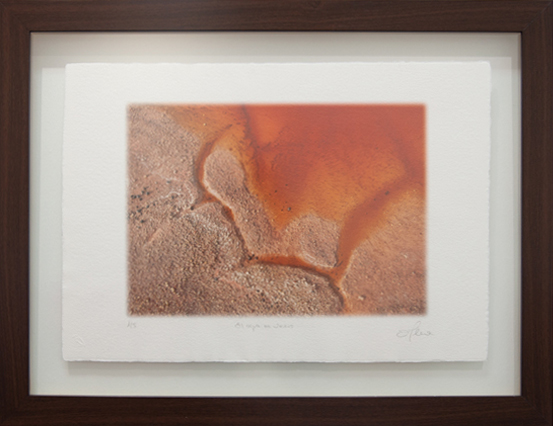 De esta manera, se idearon nuevas piezas utilizando papel artesanal, papel de algodón, tela o lienzo, con el ánimo de jugar con el espectador a identificar cuánto de pintura, cuánto de fotografía hay en cada obra. Más que para relanzar el consabido debate, para experimentar visualmente con el lienzo y la paleta que nos da la naturaleza creadora. El resultado, ya enmarcado, puede verse a continuación.