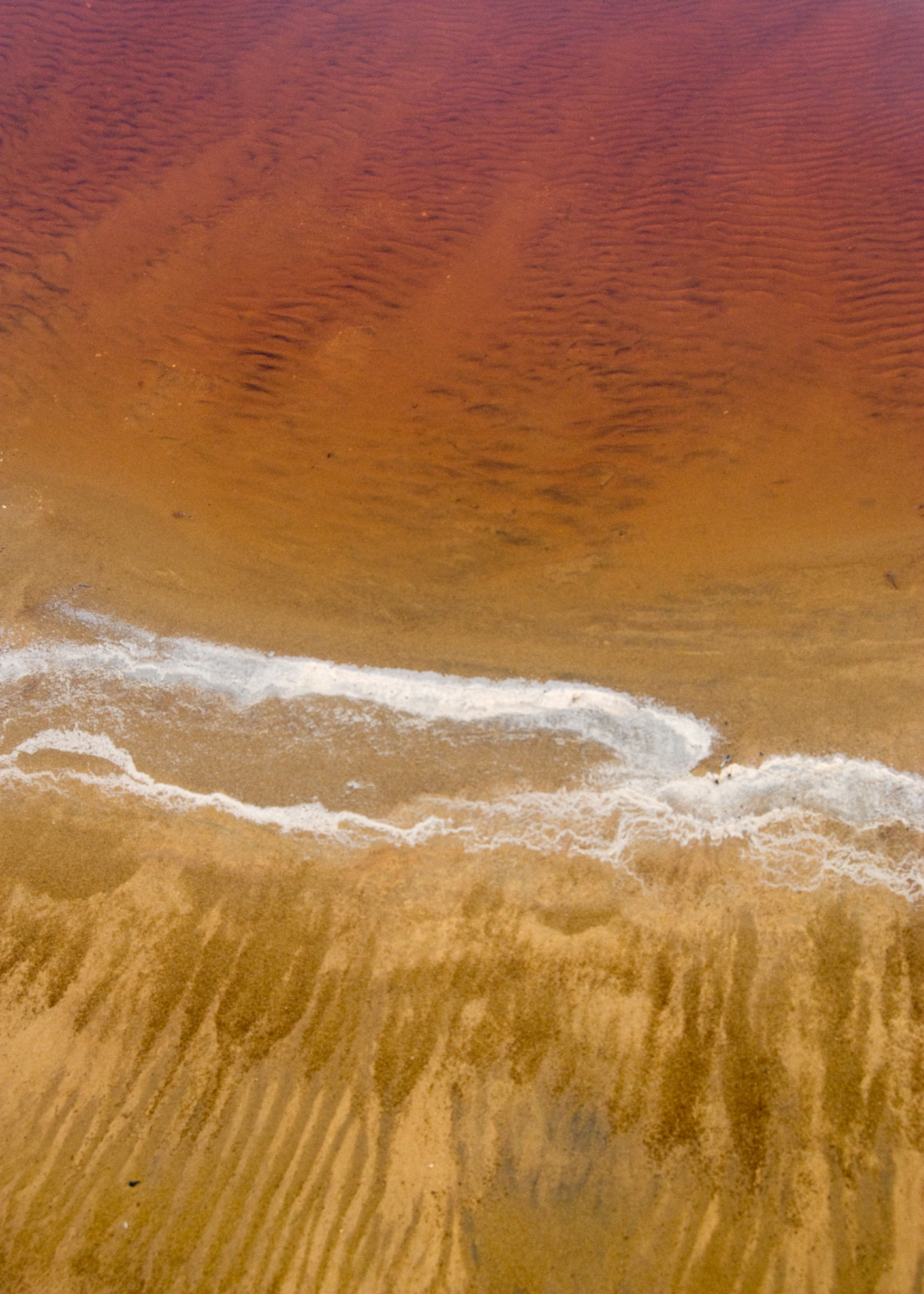 Con estas imágenes, construidas durante tres años en varias visitas a las minas de hierro de Mazarrón (Murcia) me encontré con mis propios residuos, contrastes, paisajes imposibles. Una reflexión sobre la asfixia me llevó a imaginar la vida en planetas extraños. A concebirme a mí misma como planeta. Estas imágenes surreales, en ocasiones oníricas, me conectaron con la esencia y al mismo tiempo con la materia. Para mí tienen impresa la huella de una mano amiga y el descubrimiento de pigmentos nuevos en mi paleta de creadora.